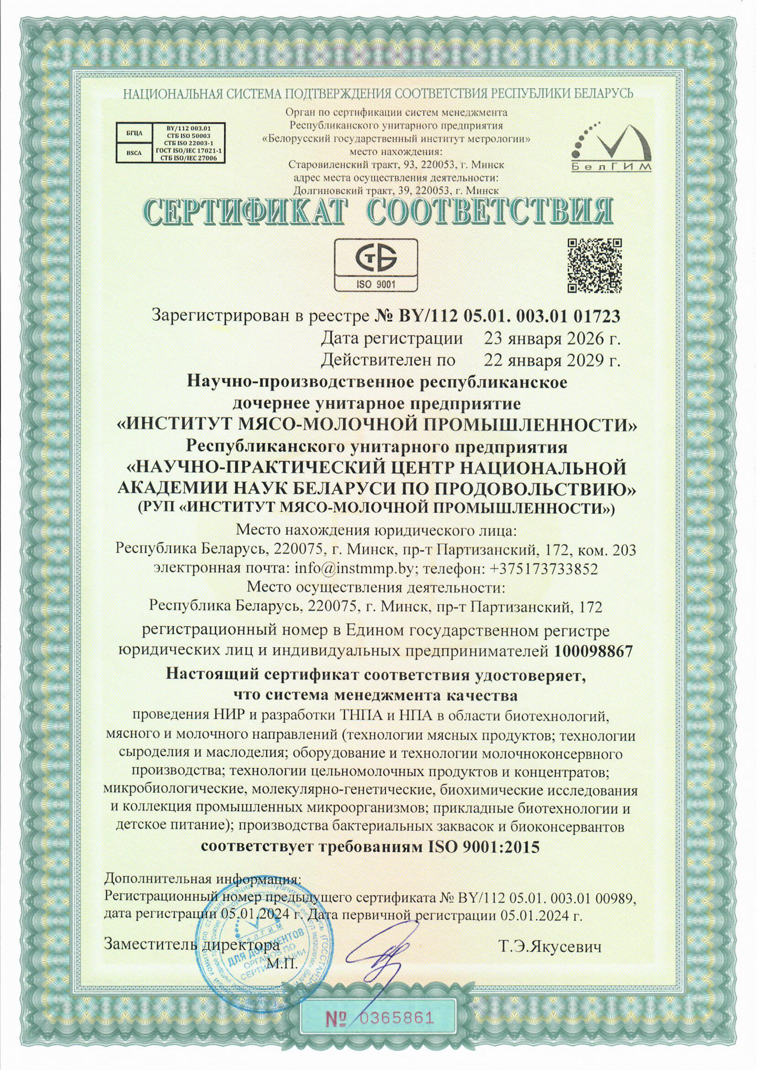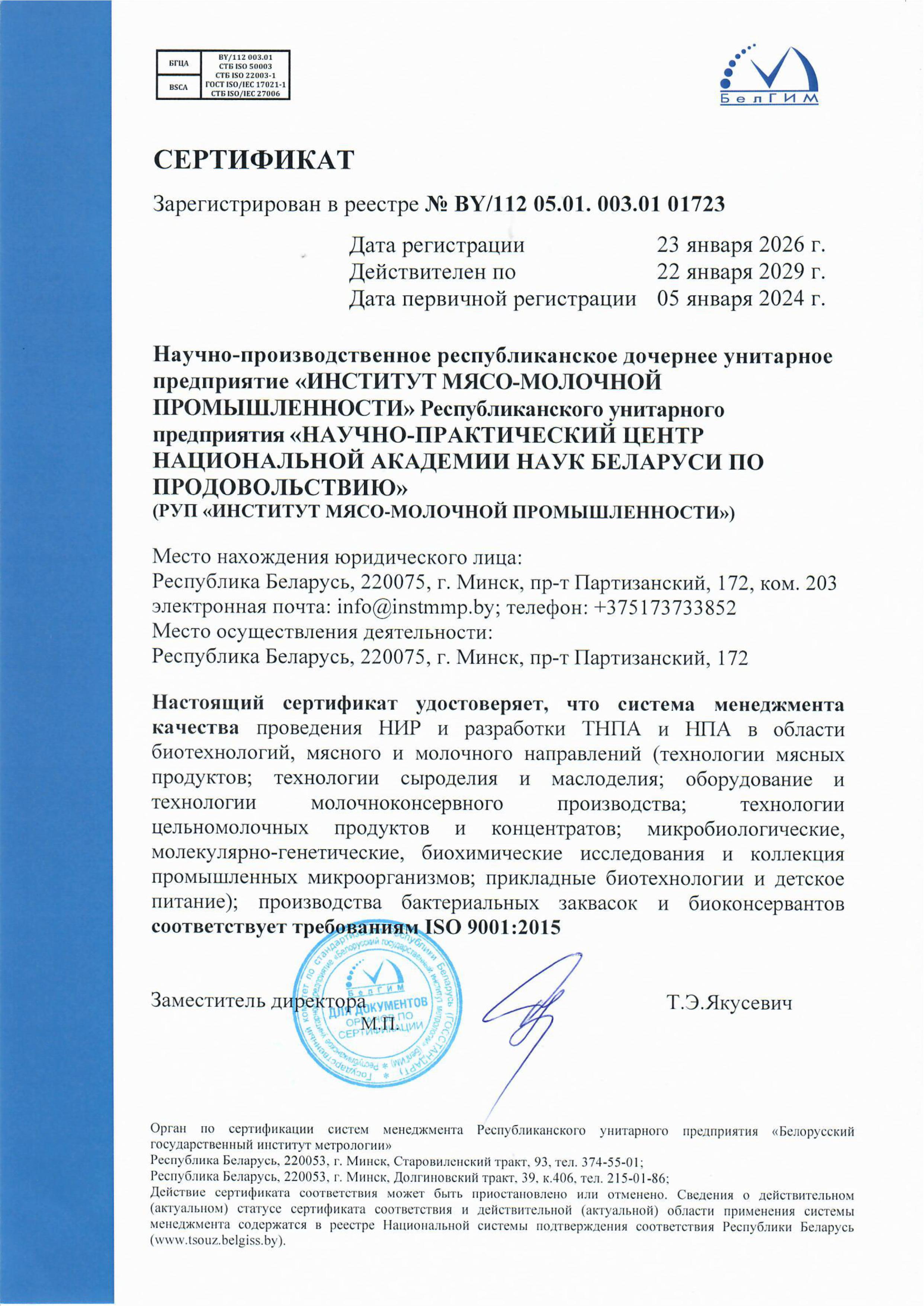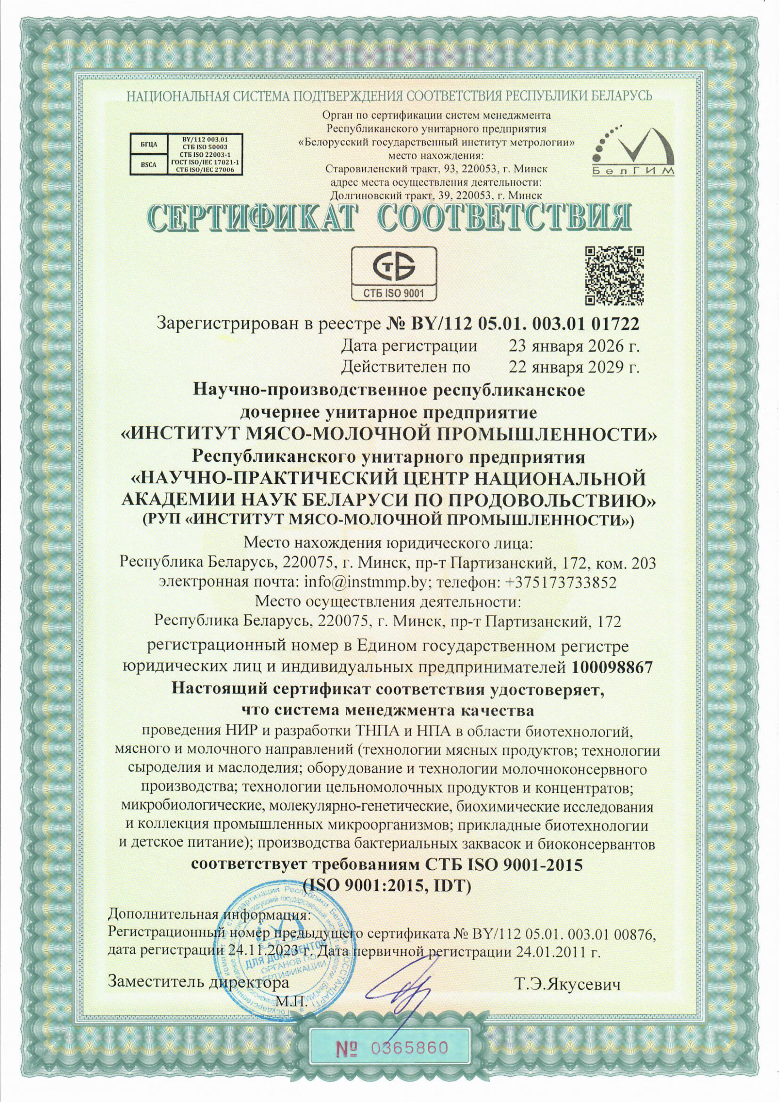 - система менеджмента качества в соответствии с требованиями СТБ ISO 9001-2015 и ISO 9001:2015;