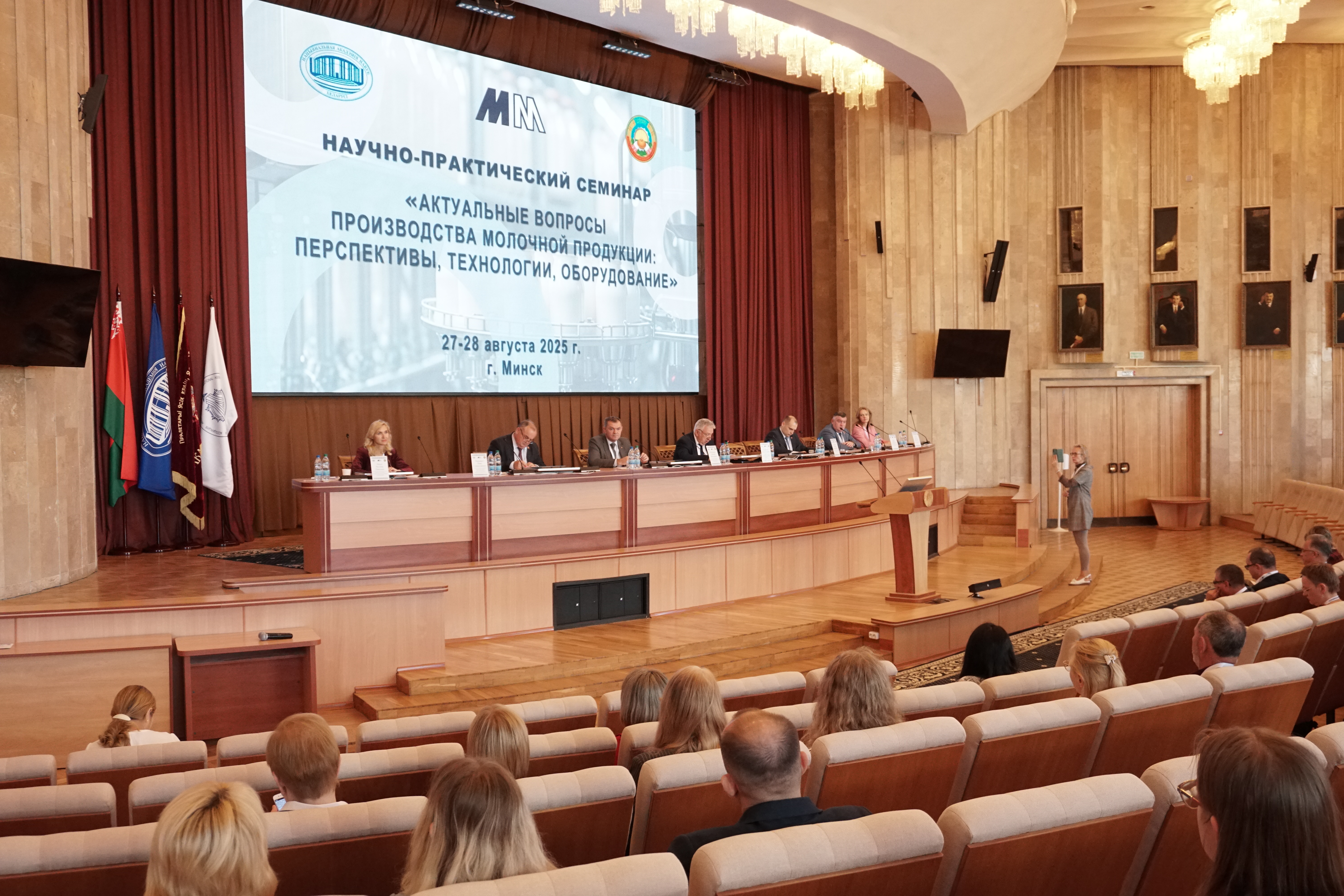 27-28 августа 2025 г. на базе Национальной академии наук Беларуси состоялся научно-практический семинар «Актуальные вопросы производства молочной продукции: перспективы, технологии, оборудование», организатором которого выступил РУП «Институт мясо-молочной промышленности» при поддержке Министерства сельского хозяйства и продовольствия Республики Беларусь и Национальной академии наук Беларуси.